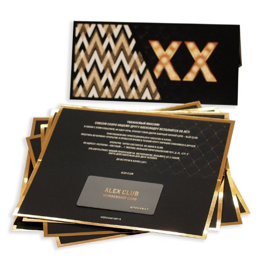 Опции: фольгирование и выборочный лак, печать переменных данных (ФИО, адреса, номера, QR коды)